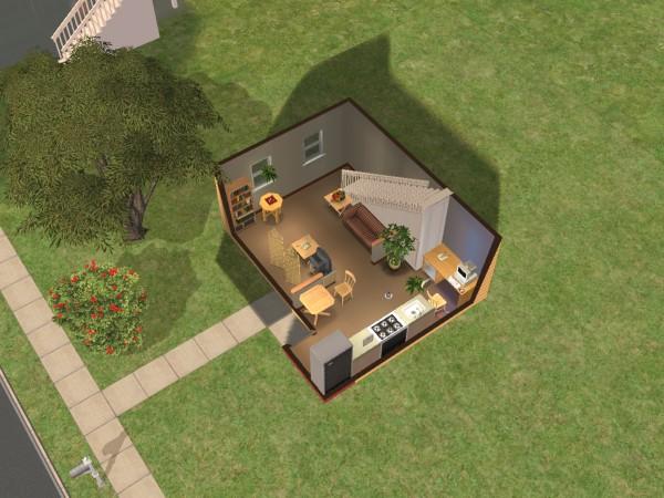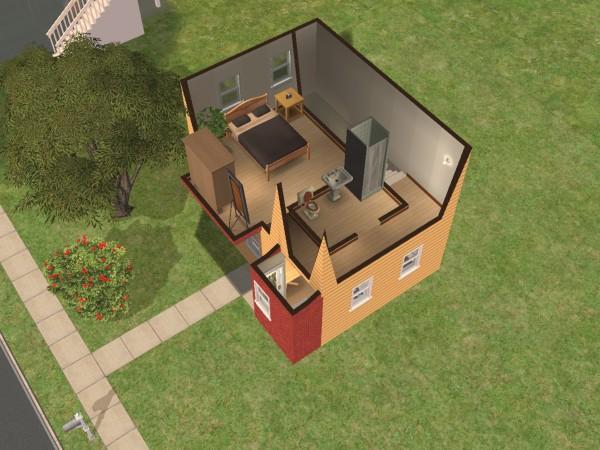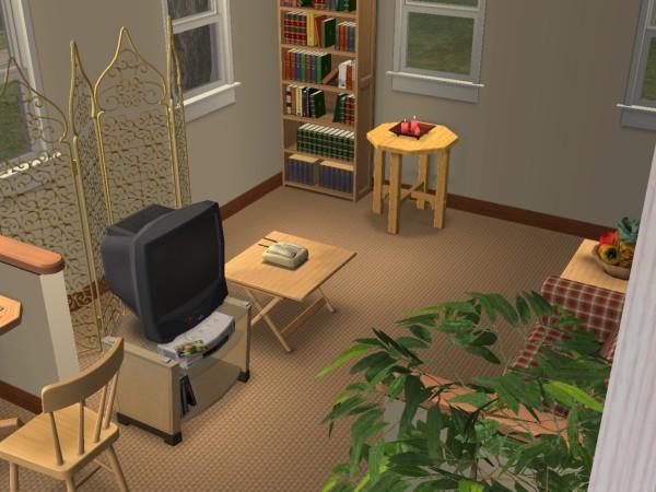 This is a slightly roomy house fully furnished for two Sims including extra's such as tv, computer and book case all for just $19,621. This house is entirely furnished with lots of decorations around the place, the bedroom even has a dresser and mirror.