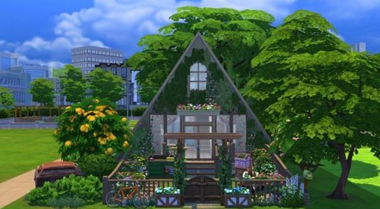 A house for four Sims, filled wtih flowers and activities.