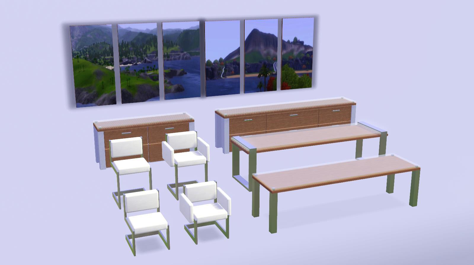 I always enjoyed this set, it's a fairly simple, minimalist, contemporary dining room set. It should fit quite nicely in some of your homes!