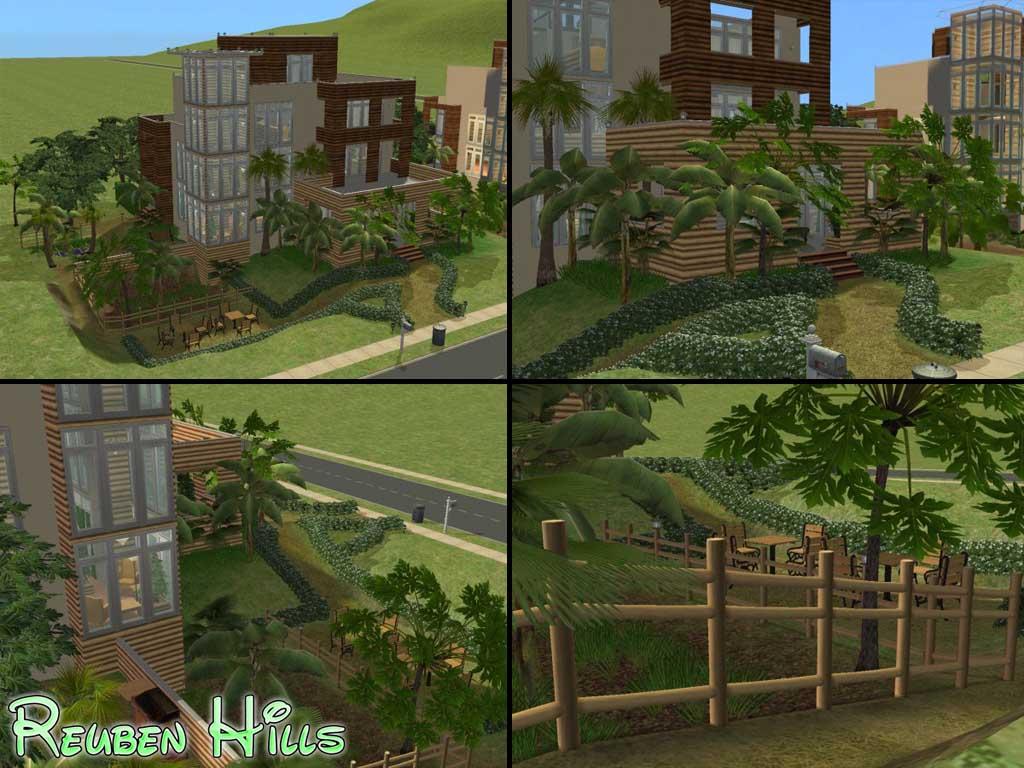 Today I bring you Reuben Hills. It is a completely original design by me. It is a semi modern lot styled around the 1990's - 2000 versions of modern. The wood siding gives it the look of blending into nature.