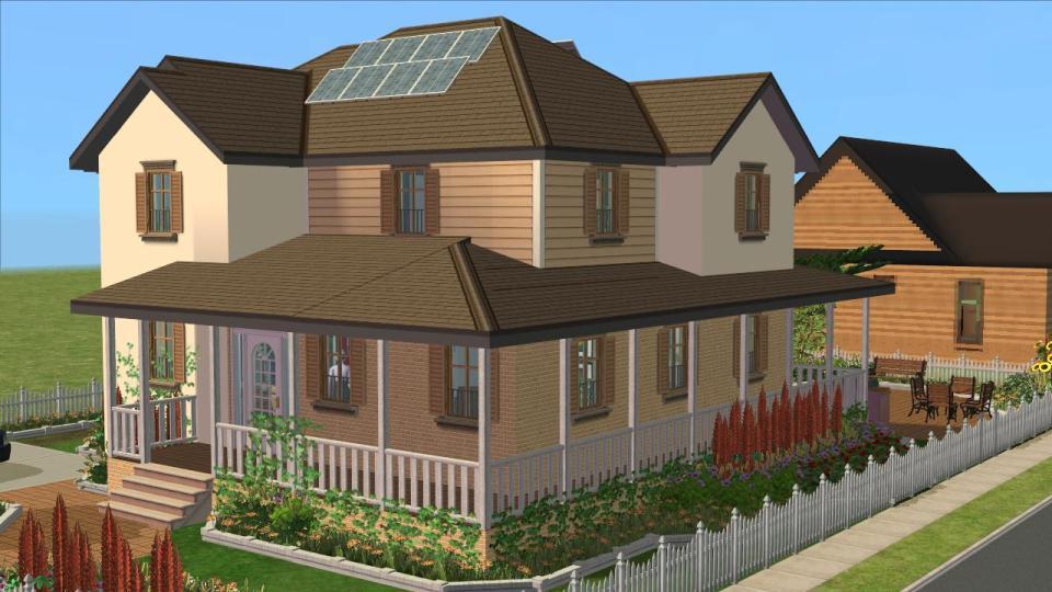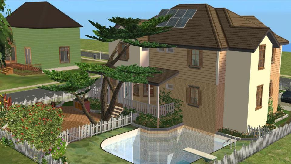 A surprisingly large house is hidden behind the garden. This lot has plenty of room for you and the kids. There is some room to expand the lot out the back and on the second floor. Your sims should be quite happy in this dwelling